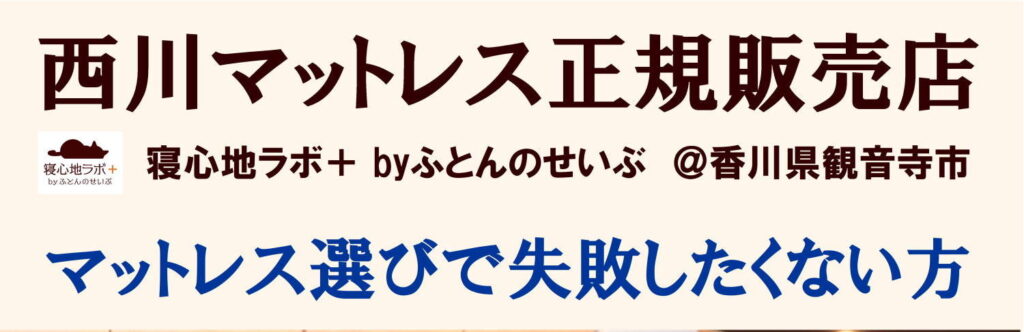 当店は香川県観音寺市豊浜町にある、快眠寝具専門店『寝心地ラボ+ byふとんのせいぶ(西部製綿株式会社)』です。