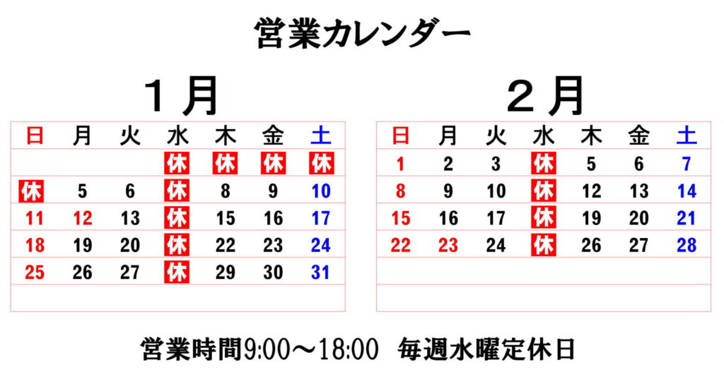 臨時休業や営業時間変更などの場合は、公式HPの新着情報にてご案内します。