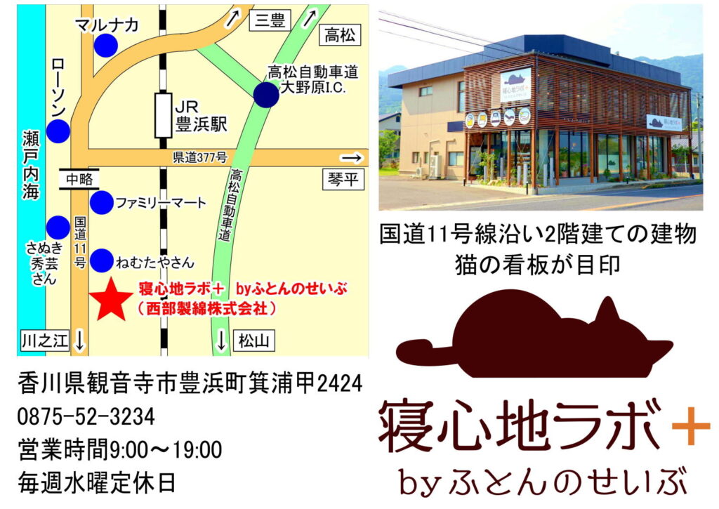 香川県観音寺市 綿のまち豊浜にある寝具店 寝心地ラボ+ byふとんのせいぶ(西部製綿株式会社)で開催します。