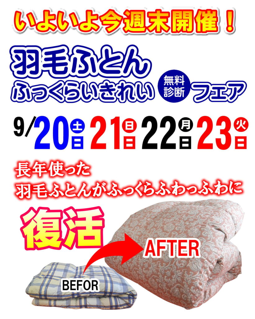 【開催間近】羽毛ふとんふっくらきれいフェア