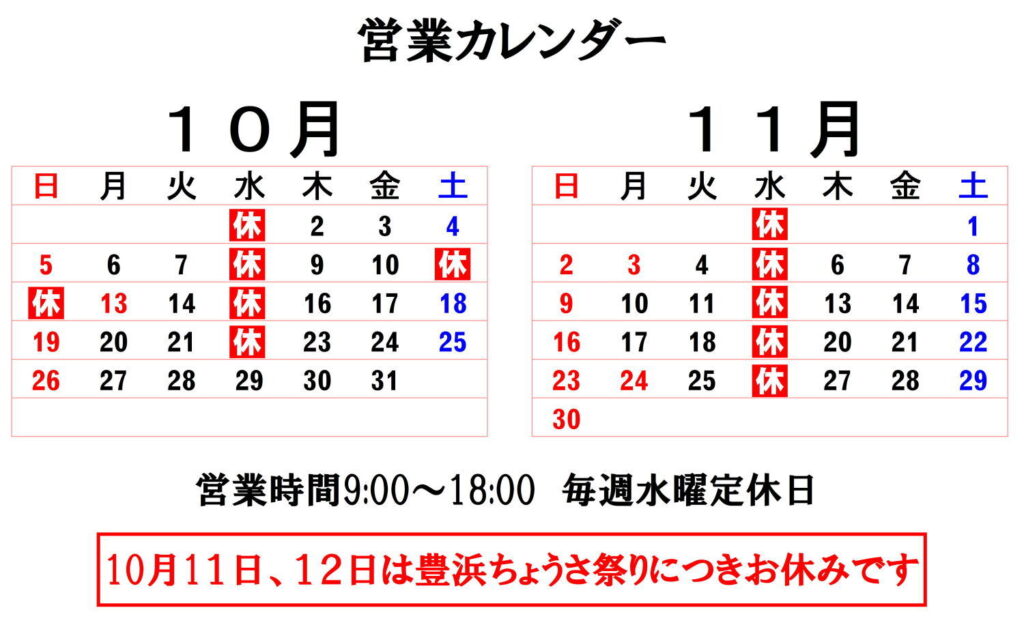 それ以外は通常通りの営業となりますので、よろしくお願い申し上げます。
