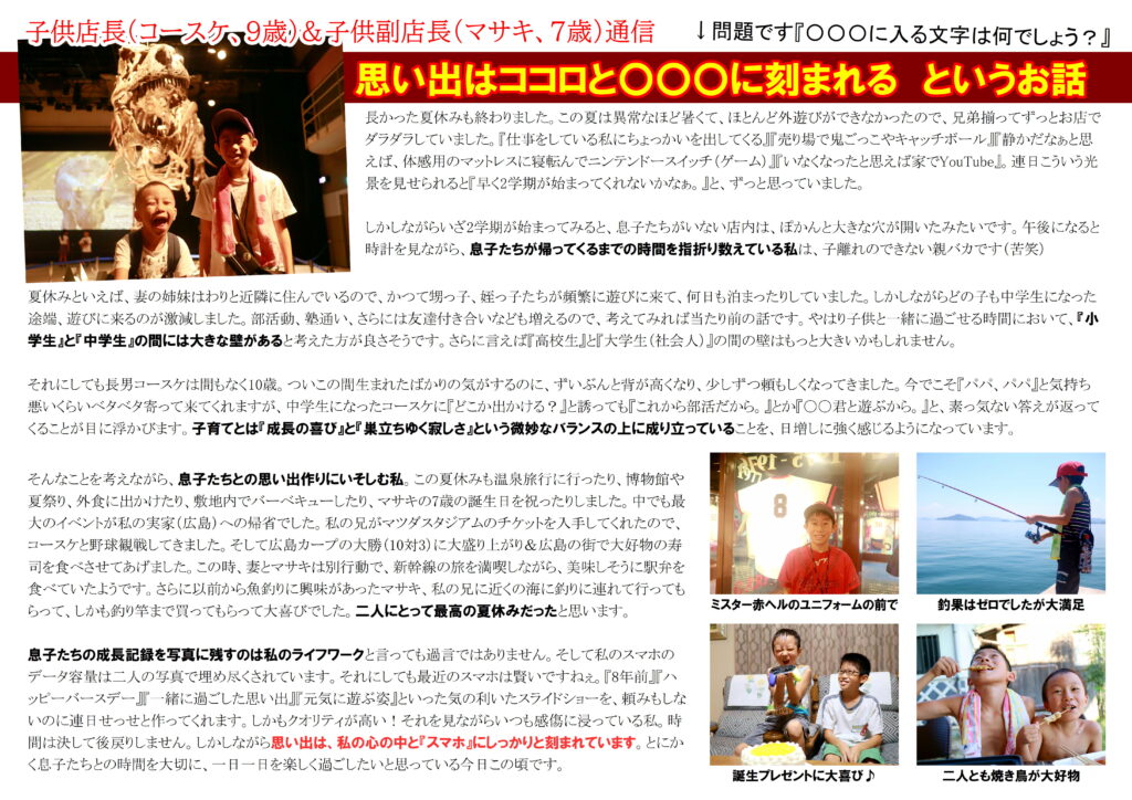 【子供店長&子供副店長通信】思い出はココロと○○○に刻まれる(2024年9月号)
