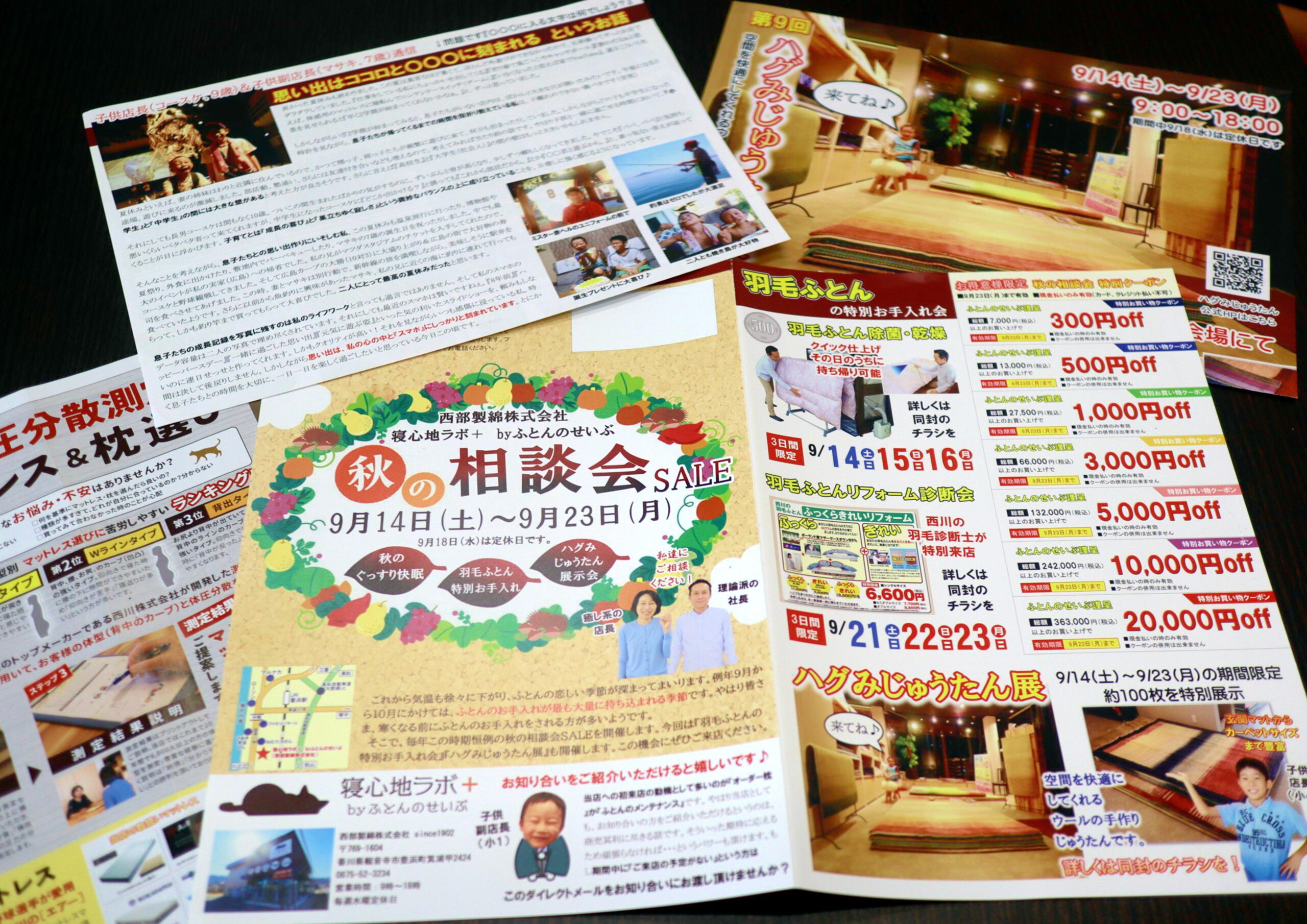 ダイレクトメールの中には、寝具の情報だけではなく、毎回『子供店長&子供副店長通信』を掲載しています。