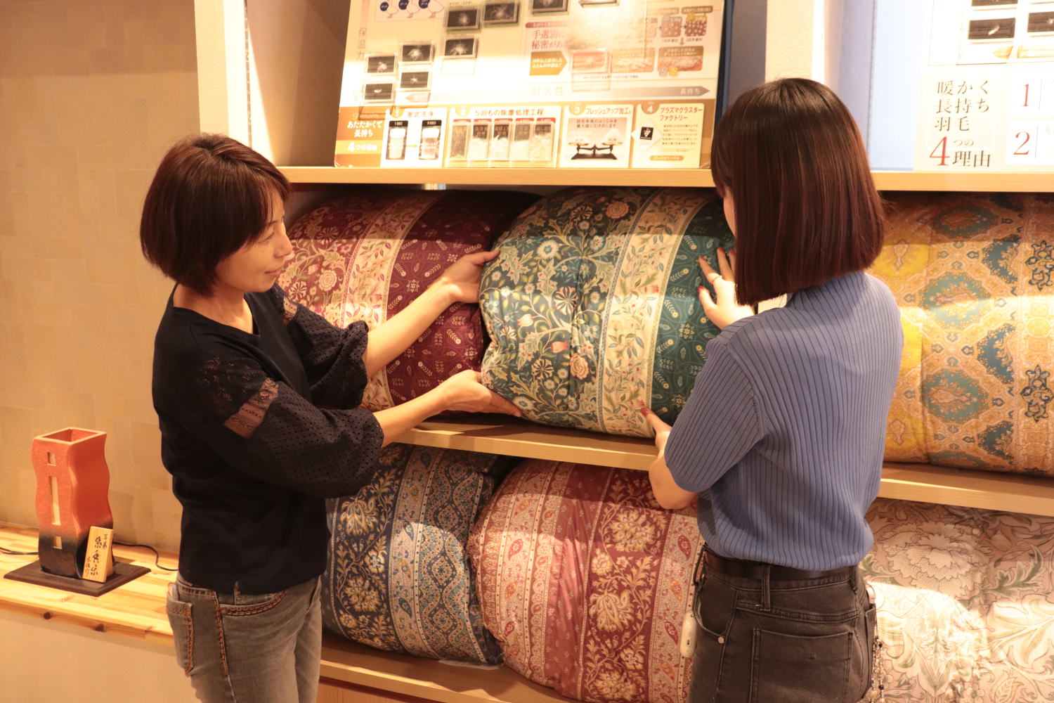 さらに、当店のような寝具専門店に足を運ぶと、数十万円もする羽毛ふとんが並んでいることもあります。
